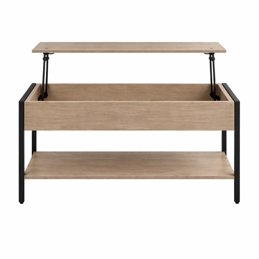 Il piano in legno massiccio offre una texture naturale, mentre le gambe in metallo garantiscono stabilità, resistendo fino a 180 kg. Superficie facile da pulire con un semplice panno.